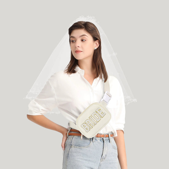 The glittering letters "BRIDE" on the fanny pack instantly catch the eye. This design not only shows the bride's unique taste, but also expresses her confidence and personality charm, making her the center of attention at the party.