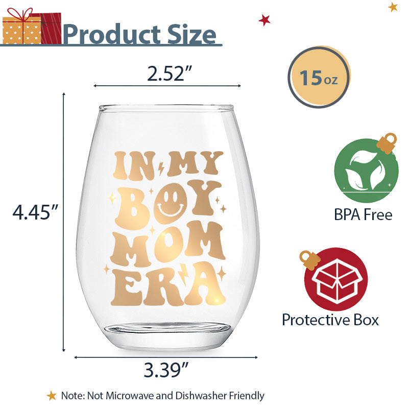 Boy Mom Gifts for Women, Gifts for Mom, Mama Gifts for New Boy Mom - in My Boy Mom Era Wine Glass, Gifts for First Time Mom, Expecting Mom, Unique Christmas Birthday Present Ideas for Mother