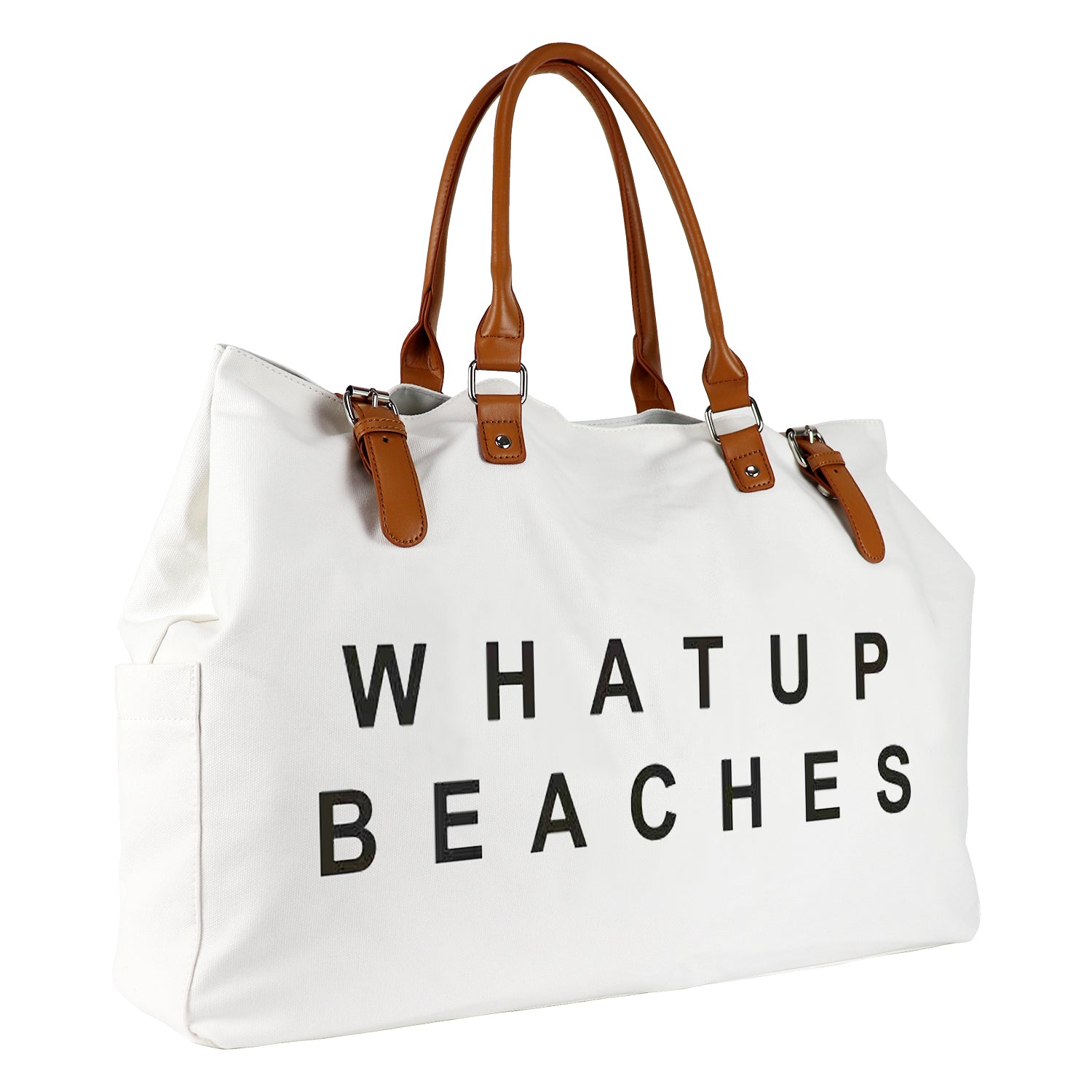 - Multifunctional Beach Please Bag: This oversized beach tote bag is ideal for a beach family time, pool party, travel and more. With the nice print "WHATUP BEACHES", this tote is uniquely stylish and functional.