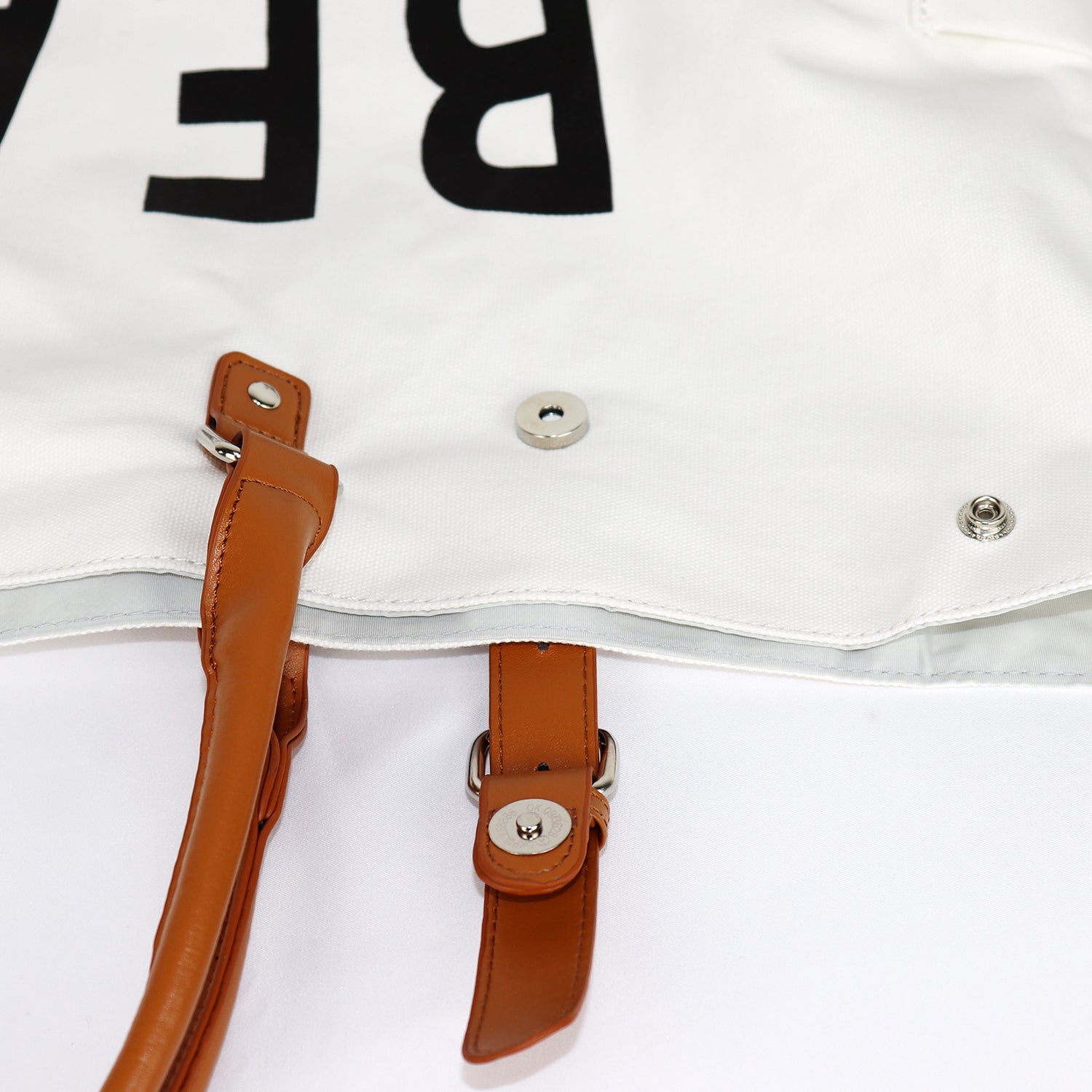 - Waterproof Material: This is a waterproof beach tote, made of 100% cotton canvas, waterproof and sandproof. Inside is waterproof fully linned. It won't get dirty easier. It holds a lot, is extra strong and looks super trendy.Top closure is with leather clasp, which keeps your fabulous must-haves from falling out. And you could adjust the top corner clasp, it will turn into duffle bag, very flexible to use.