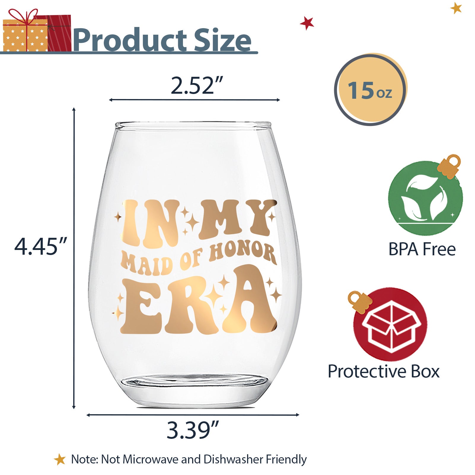 • Elegant Design for Memorable Celebrations: This 15 oz wine glass is perfect for honoring your bridesmaids,maid of honor and matron of honor. Featuring the fun phrase "In My Maid of Honor Era" it’s a stylish and unique keepsake for wedding and bachelorette party.