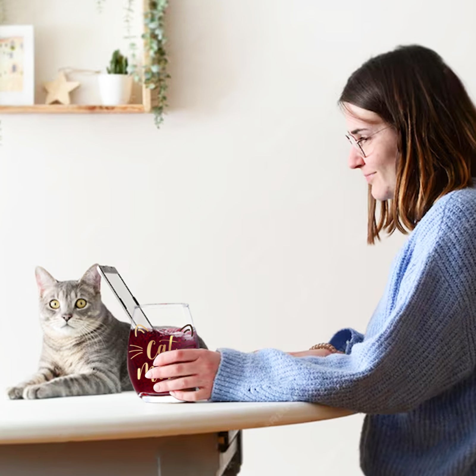 - Best Cat Mom Gifts: This “Cat Mom” glass is stylish and easy to clean, perfect for daily use. Its smooth surface prevents stains, allowing for effortless cleaning. Each time she cleans it, it symbolizes her bond with her beloved cat, reminding her to cherish their special relationship. This cat-themed gift is a constant reminder of the joy and companionship her feline friend brings to her life.