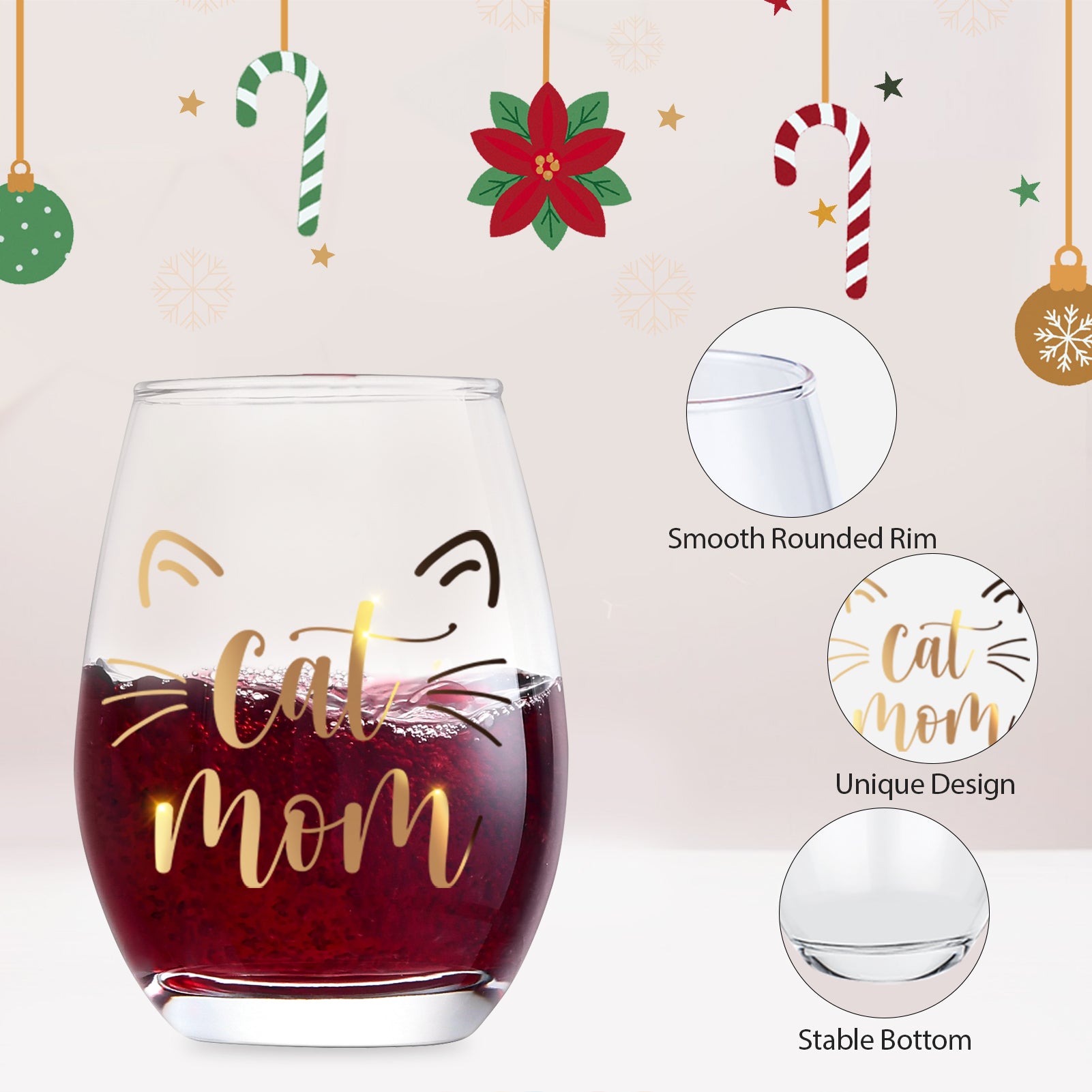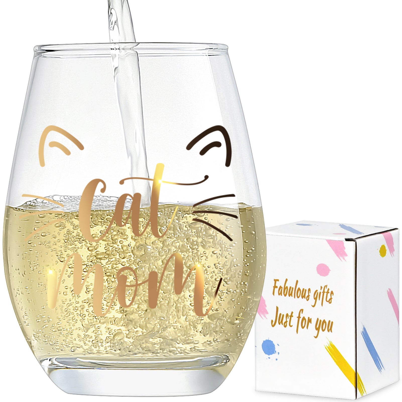 - Special Cat Mom Gifts: This 15oz stemless wine glass, imprinted with the golden phrase “cat mom”, is perfect for cat mom. Not only can it be used as a decorative item to show one’s love for cats, but it can also add a touch of elegance and personality when drinking beverages. The design of the golden imprint makes the glass look even more exquisite, making it an ideal gift for cat lovers, and the perfect surprise for your loyal cat mom friends.