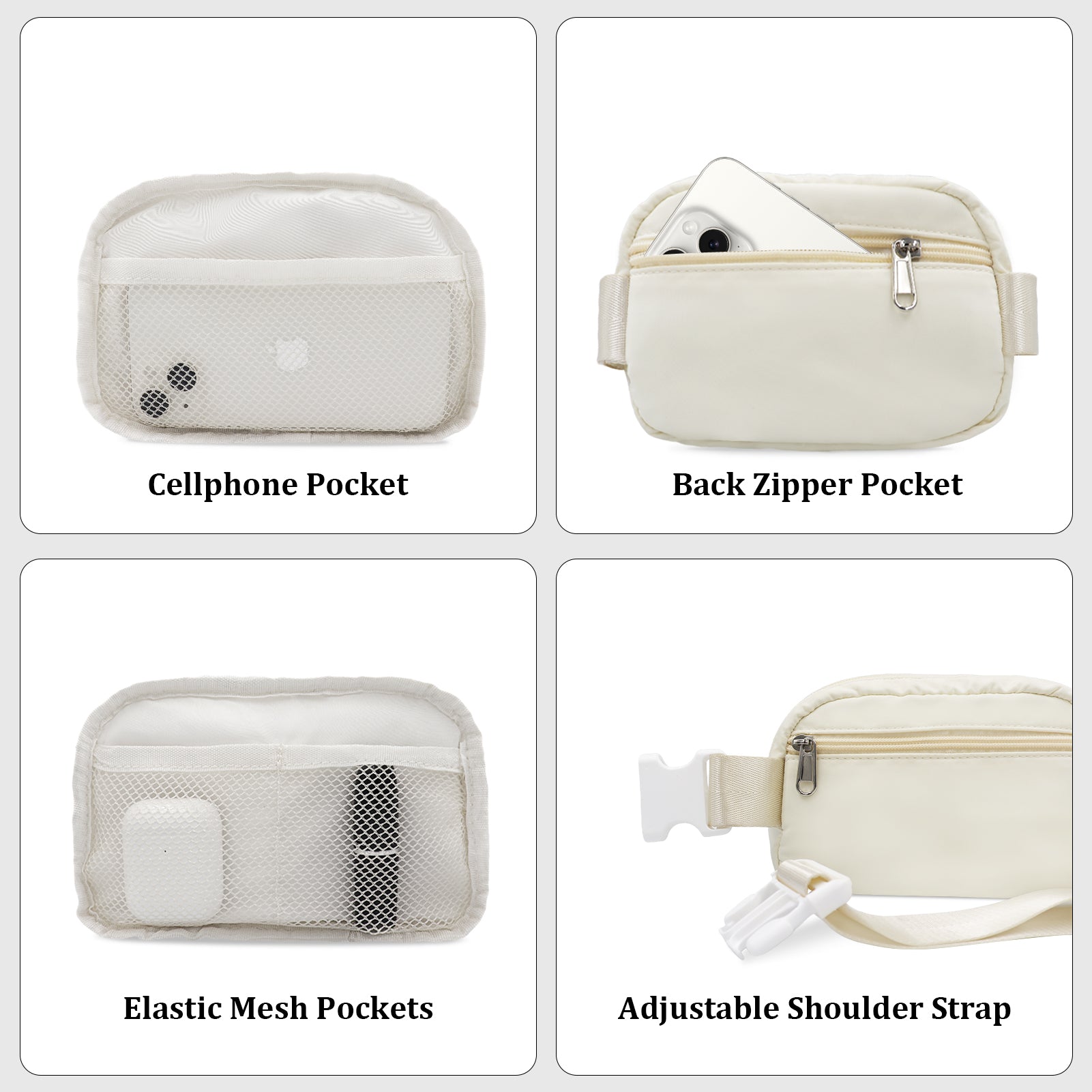 - Size and Water Resistance: This bridal fanny pack measures about 8.66" x 5.19" x 1.97". The shoulder straps can be adjusted from 21.65" to 43.3" and the nylon material is known for its flexibility, wrinkle resistance and tear resistance, ensuring the longevity of the bag. And it effectively protects the contents from small raindrops.