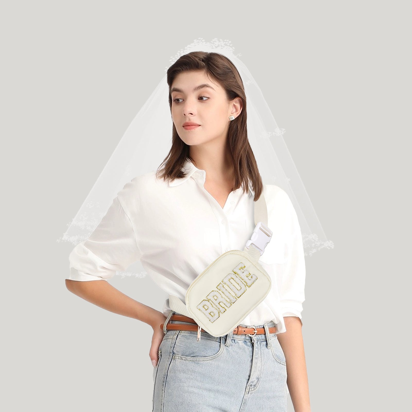 - Unique Bride Fanny Pack: The glittering letters "BRIDE" on the fanny pack instantly catch the eye. This design not only shows the bride's unique taste, but also expresses her confidence and personality charm, making her the center of attention at the party.